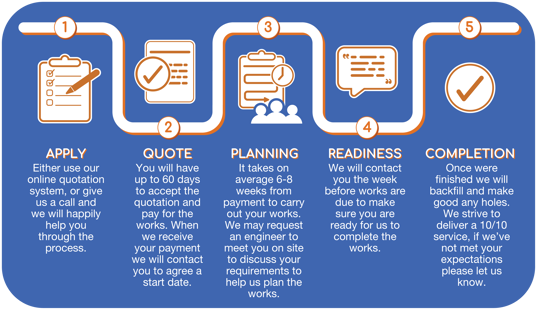 Altering your gas connection for your house or small business will start at £1,000 (plus VAT at the applicable rate). It typically takes six to eight weeks from the time of payment to the completion of the work. We will always give you the earliest date that is available, and we will notify you if there are any local traffic management or highway restrictions in your area, as this could lengthen the lead time before we begin work.